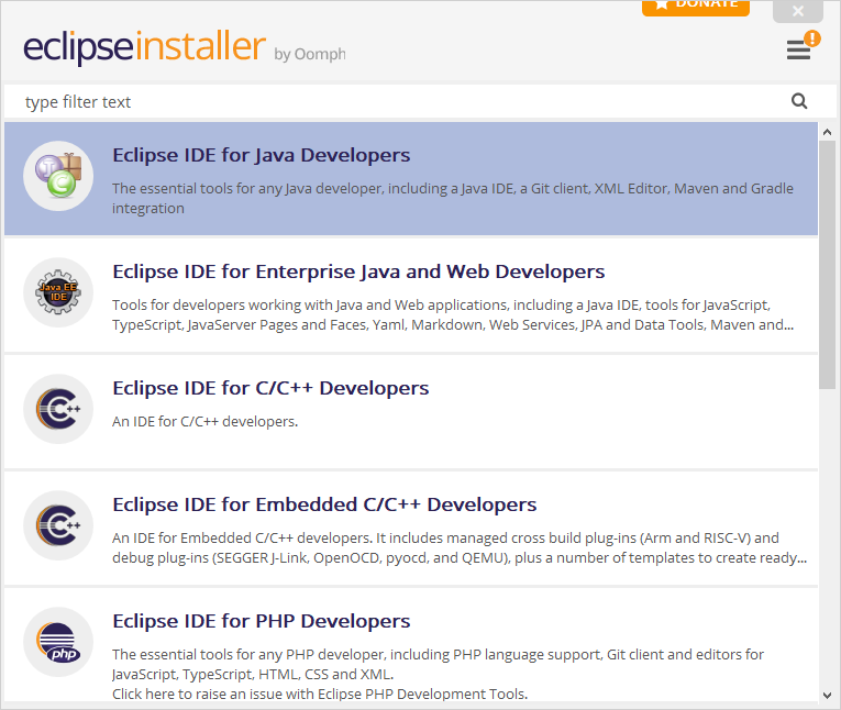 接下来下载ide , Eclipse下载地址: http://www.eclipse.org/downloads/packages/